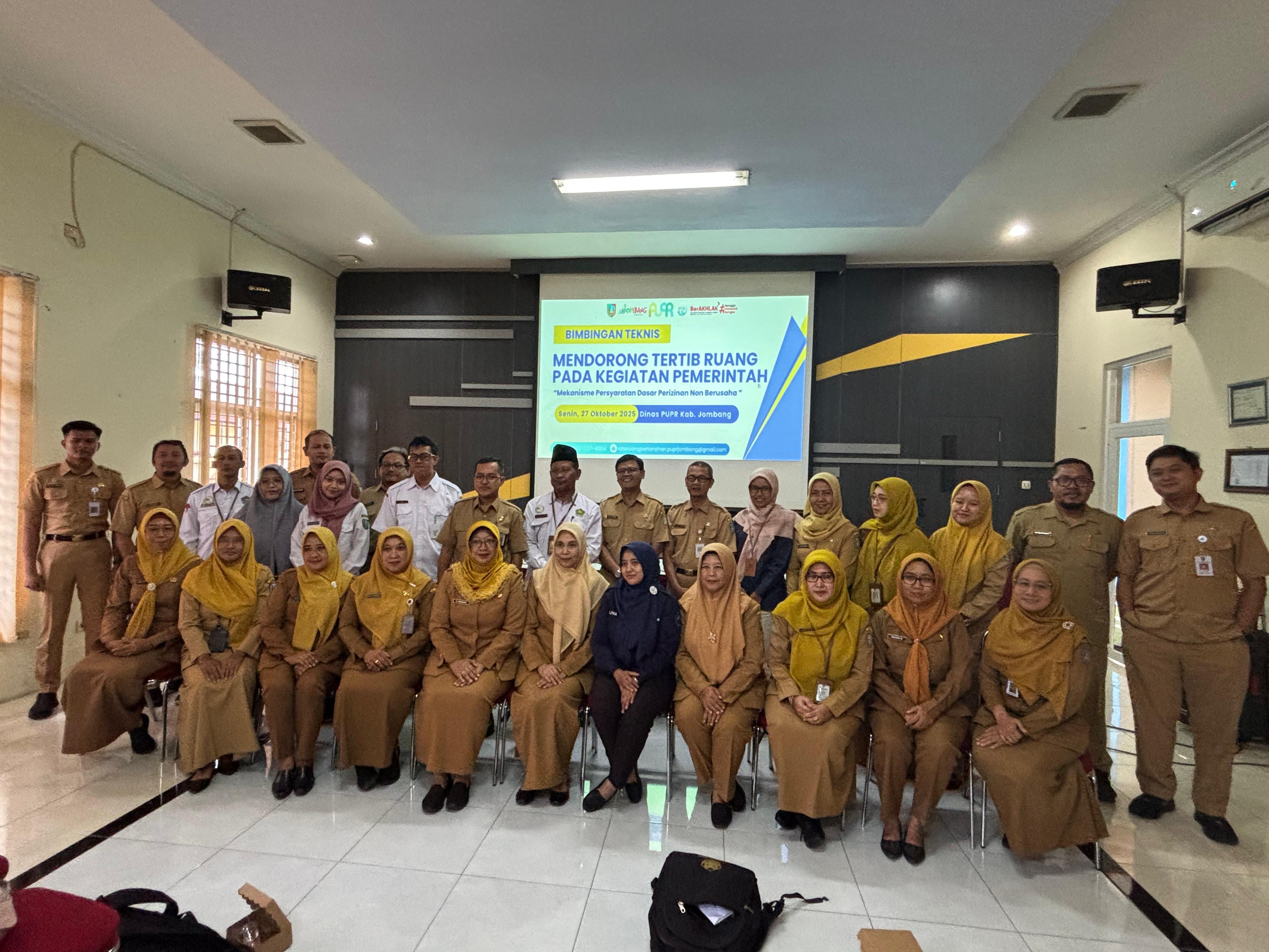 Jombang - Bimbingan Teknis Mendorong Tertib Ruang pada Kegiatan Pemerintah sebagai salah satu tindak lanjut dari Amanat Undang-Undang Nomor 6 Tahun 2023 Tentang Cipta Kerja Dan Peraturan Pemerintah Nomor 21 Tahun 2021 tentang Penyelenggaraan Penataan Ruang, yang mewajibkan setiap kegiatan pembangunan Untuk memiliki Kesesuaian Kegiatan Pemanfaatan Ruang (KKPR) Serta Persetujuan Bangunan Gedung (PBG).