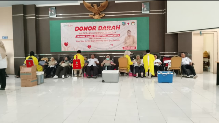 Jombang, 26 November 2025 — Dalam rangka memperingati Hari Ulang Tahun ke-26 Dharma Wanita Persatuan (DWP) Tahun 2025, DWP Kabupaten Jombang menggelar kegiatan sosial berupa aksi donor darah. Kegiatan ini mengusung tema “Karena setetes darahmu sangat berarti bagi mereka yang membutuhkan”, sebagai bentuk kepedulian terhadap sesama dan upaya membantu ketersediaan stok darah di PMI.