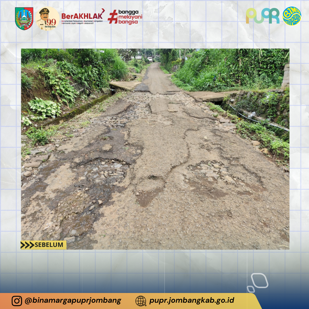 Dalam rangka mendukung Program 99 Hari Kerja Abah Bupati dan Gus Wakil Bupati, pada hari Kamis (17/4/2025) telah dilaksanakan pemeliharaan rutin jalan pada ruas Jl. Panglungan - Sranten oleh UPT PJJ Bina Marga Wilayah Kerja Ngoro. Pekerjaan tersebut merupakan penutupan lubang jalan menggunakan material Hotmix kurang lebih 12 ton pada beberapa spot kerusakan jalan yang berbeda di ruas tersebut tuntas digelar dan mampu menanggulangi kerusakan pada permukaan jalan yang cukup parah.
