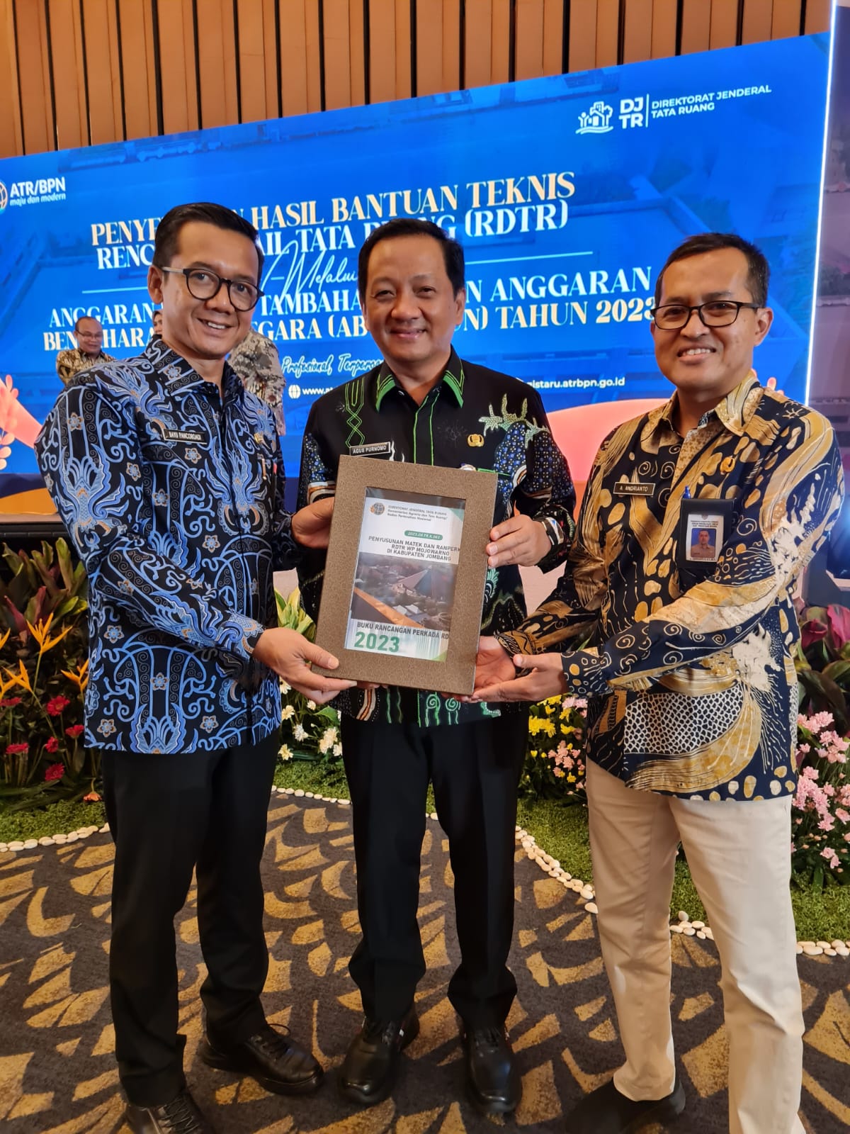 Jakarta - Menteri Agraria dan Tata Ruang/Kepala Badan Pertanahan Nasional, Hadi Tjahjanto menyerahkan Materi Teknis Rencana Detail Tata Ruang (RDTR) kepada 68 kepala daerah pada Rabu (10/01/24) di Sheraton Grand Jakarta Gandaria City Hotel. Salah satunya adalah Kabupaten Jombang yang saat ini juga sedang melakukan penyusunan RDTR WP MOJOWARNO.